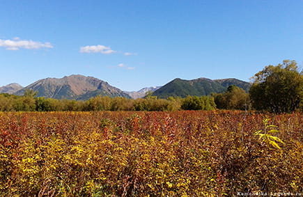 По пути на пляж мы проедем лес, тундровую зону и зеленую долину с камчатскими ягодами.