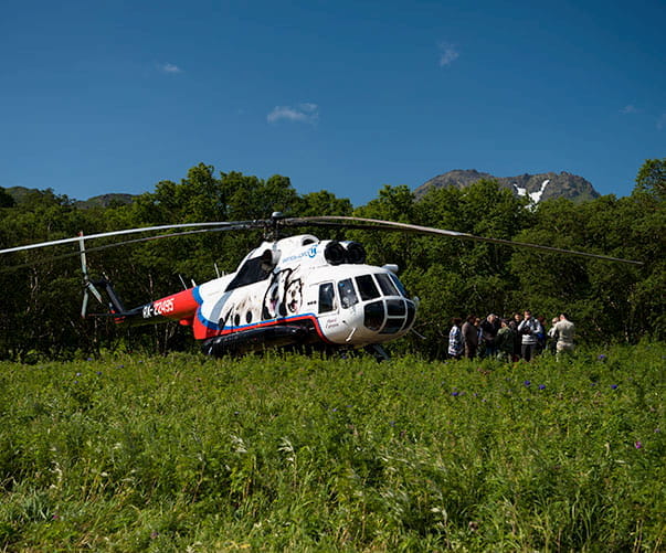 Экскурсия завершается. Садимся в вертолет и отправляемся в аэропорт в поселке Николаевка. Перелет займет 20 минут. По пути мы снова окажемся над «домашними» вулканами и Петропавловском-Камчатским — можно сделать обзорные фотографии.
